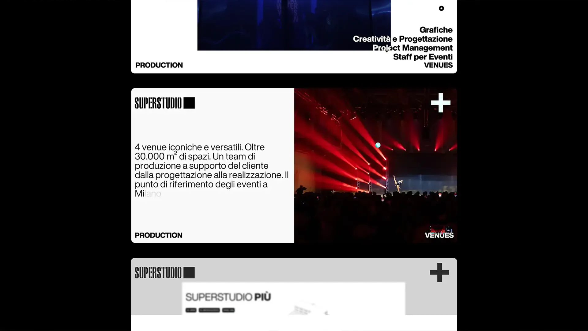 Per Superstudio Events abbiamo dato vita a un ecosistema digitale stratificato: venue, eventi, articoli, progetti, configuratore di spazi in 3D. Tutto racchiuso in un una piattaforma capace di tradurre questa ricchezza in un’esperienza digitale chiara, elegante e fluida.